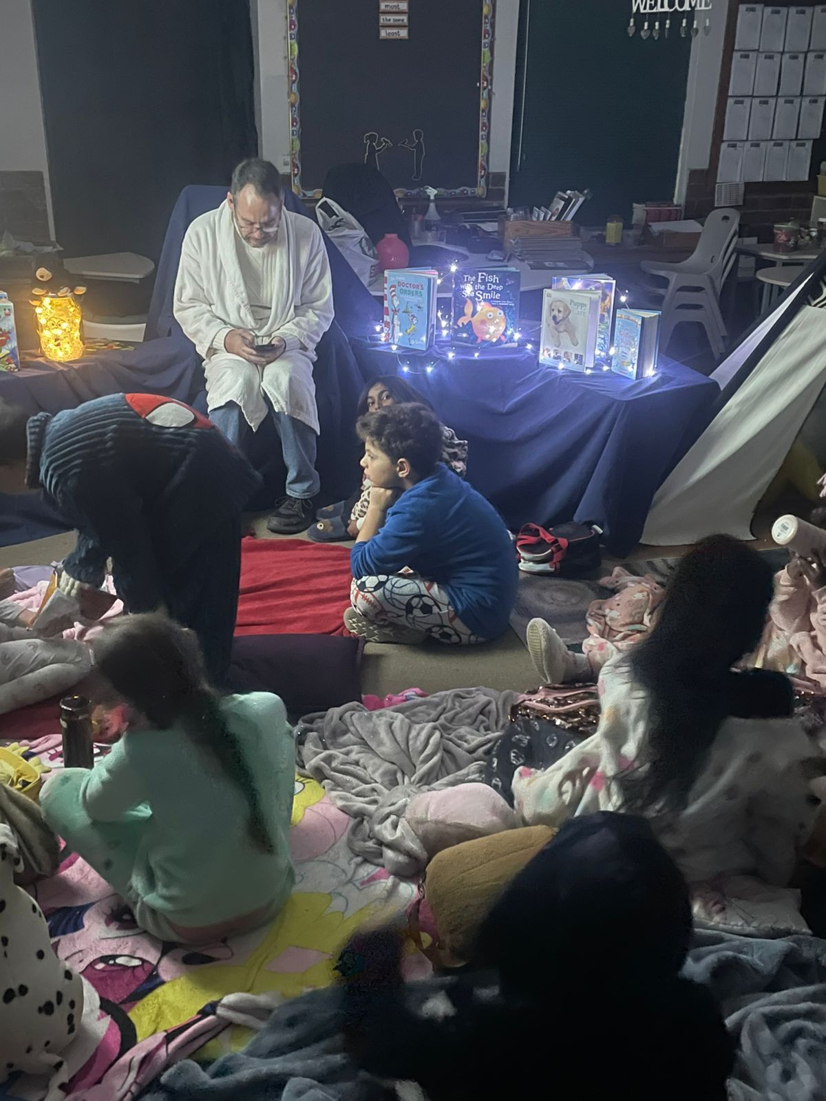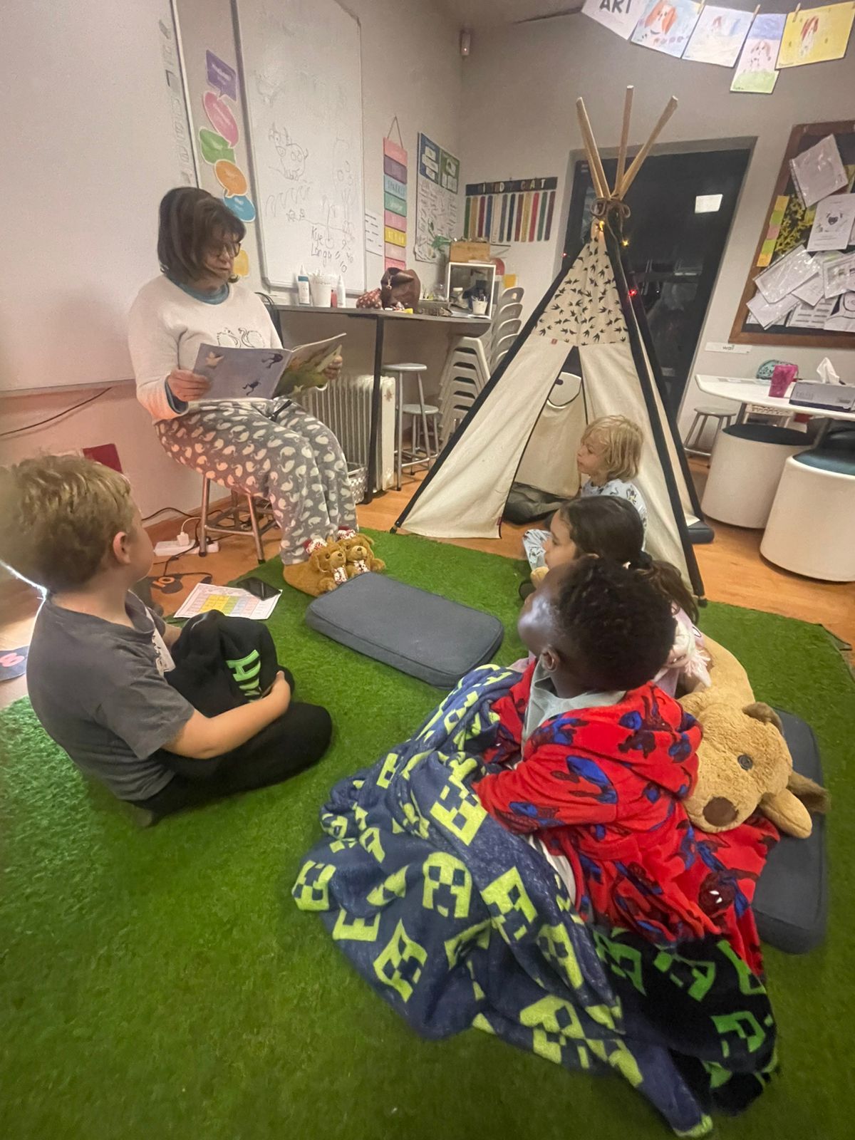 Every ten minutes, teachers rotated between classrooms, sharing beloved tales and sparking imaginations. This gave students a chance to experience different stories and voices throughout the hour. As one child shared, "It was fun because we got hot chocolate and the teachers read to us."