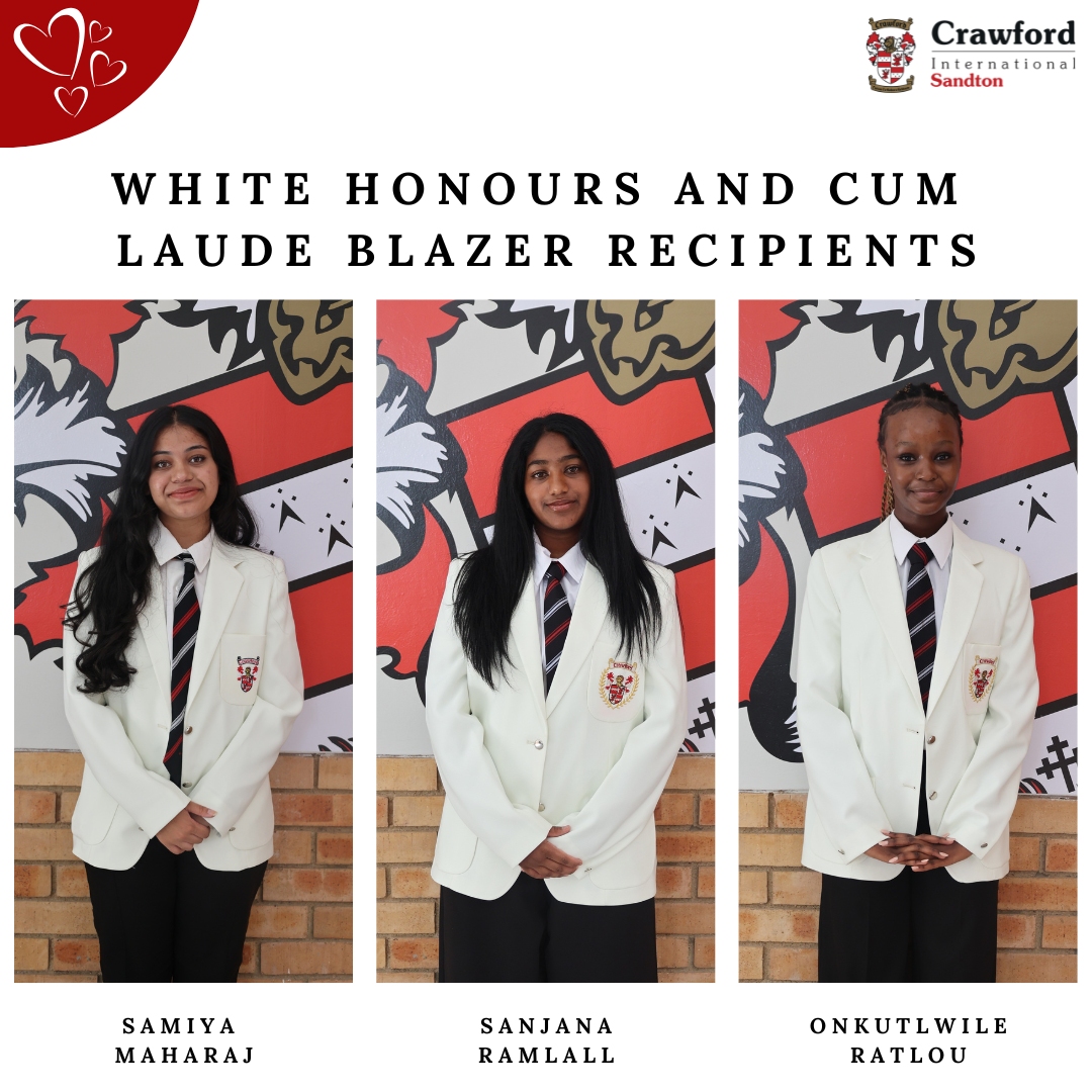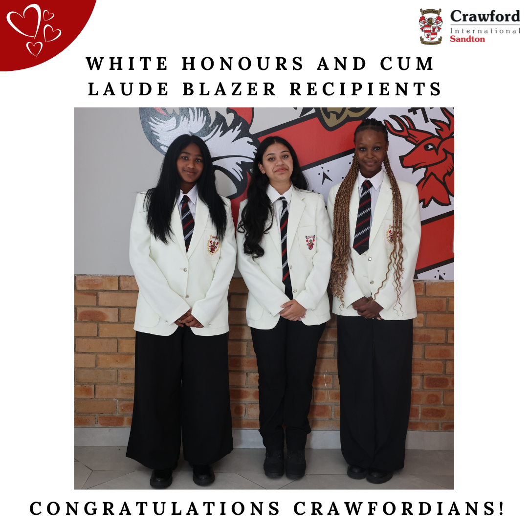 We are proud to recognise an exceptional group of students at Crawford International Sandton College who have earned the prestigious White Honours Blazer. This distinguished award represents outstanding achievement across multiple disciplines and reflects a commitment to excellence, leadership, and service within our school community.