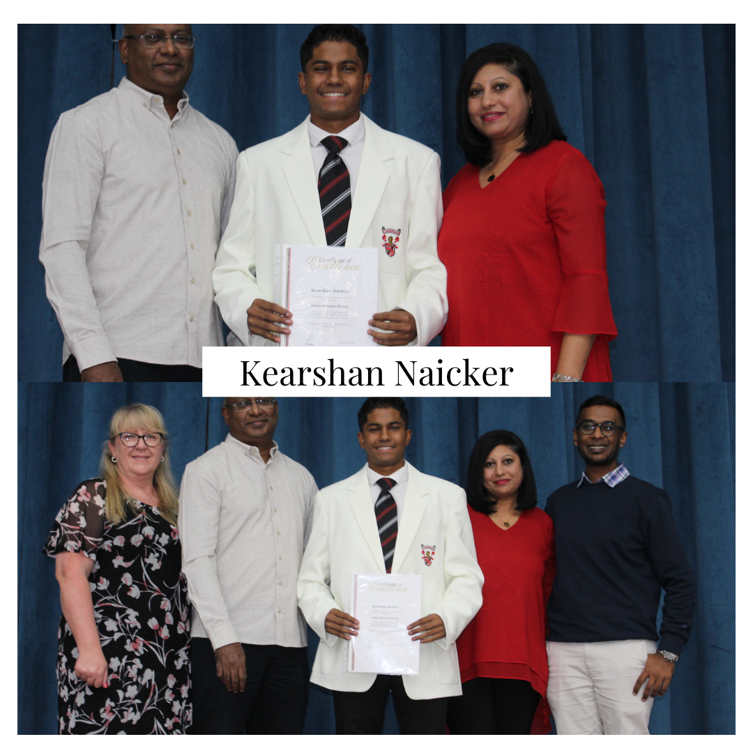 - Kearshan Naicker: Academics, Culture (Public Speaking), Service
