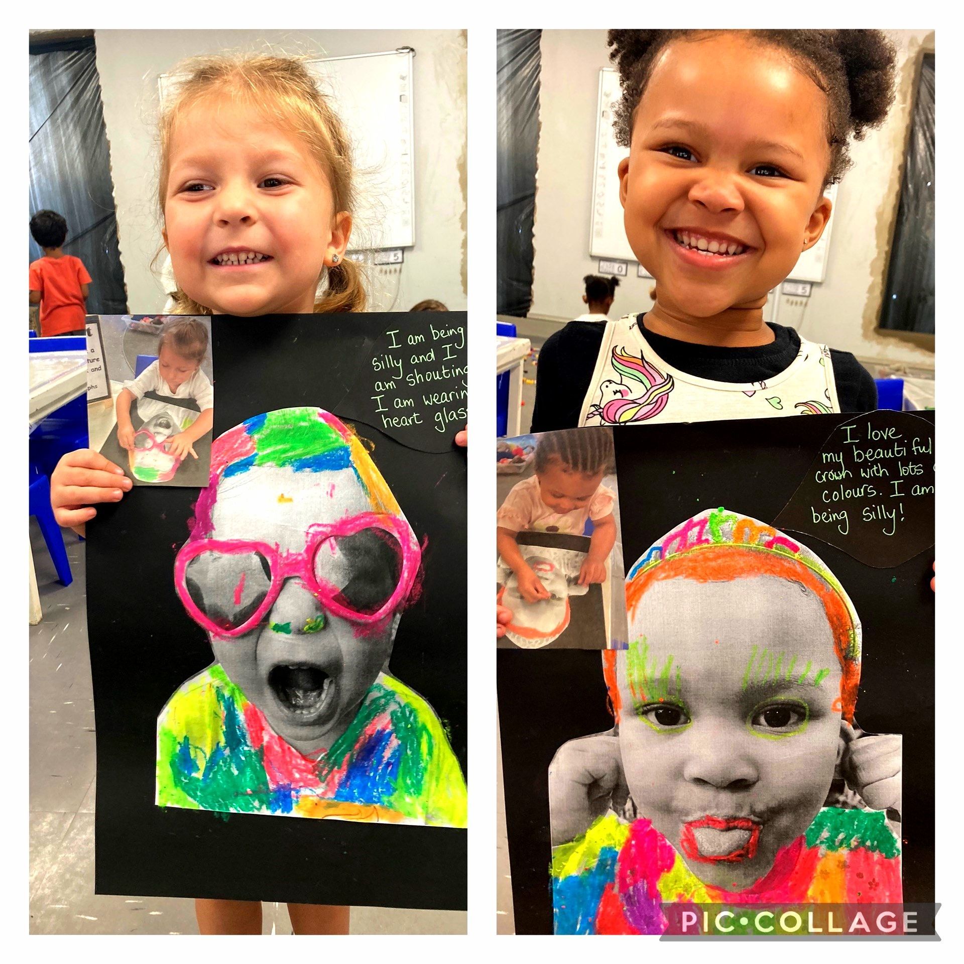 Pop Art is a style of art based on simple, bold images of everyday items that are painted in bright colours. We explored the idea of Pop Art with our Grade 000 children and asked them to imagine living in a world with no colours - only black and white. We took photographs of the children in black and white, asking them to portray a silly face. The children then had to choose various colours to add to their photograph, making them bright and colourful.